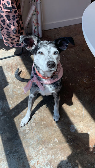 Meet Luna, the heart and soul of Hawkins & Clover! As our almost 13-year-old Catahoula Leopard Dog mix from the Atlanta Humane Society, Luna excels in testing new products, providing emotional support, perfecting the art of napping, and brightening everyone’s day with her charm.